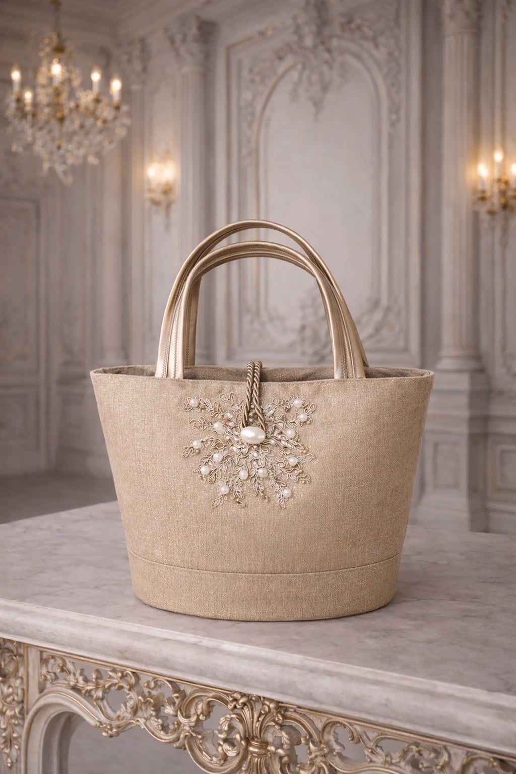 "Feminina Coralina – Handgefertigte Luxus Tasche mit Stickerei und Süßwasserperlen, inspiriert von Korallenriffen"